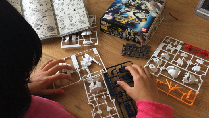 その後は、ガンプラにも興味を示し、押し入れに積んであったガンプラを開封し一緒に作りました。