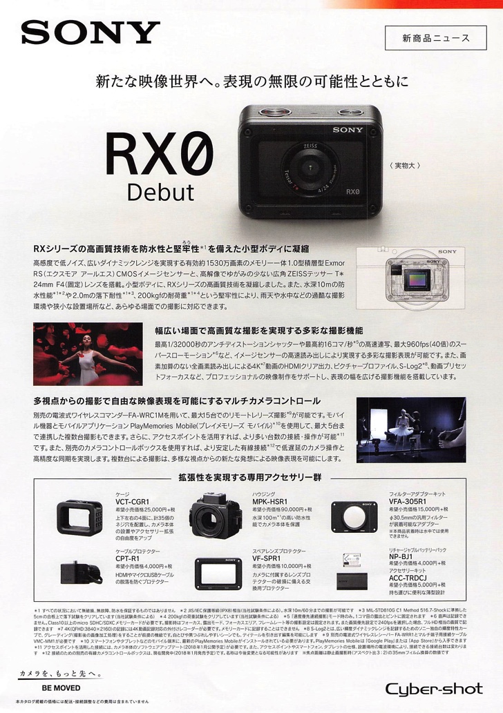 アクションカム市場はGOPROで一旦盛り上がったものの最近は沈静化しており、このRX0がカンフル剤となるかもしれません。1型CMOSイメージセンサとツアイスレンズとの組み合わせにより、このサイズとは思えない画質での撮影が可能となりました。
