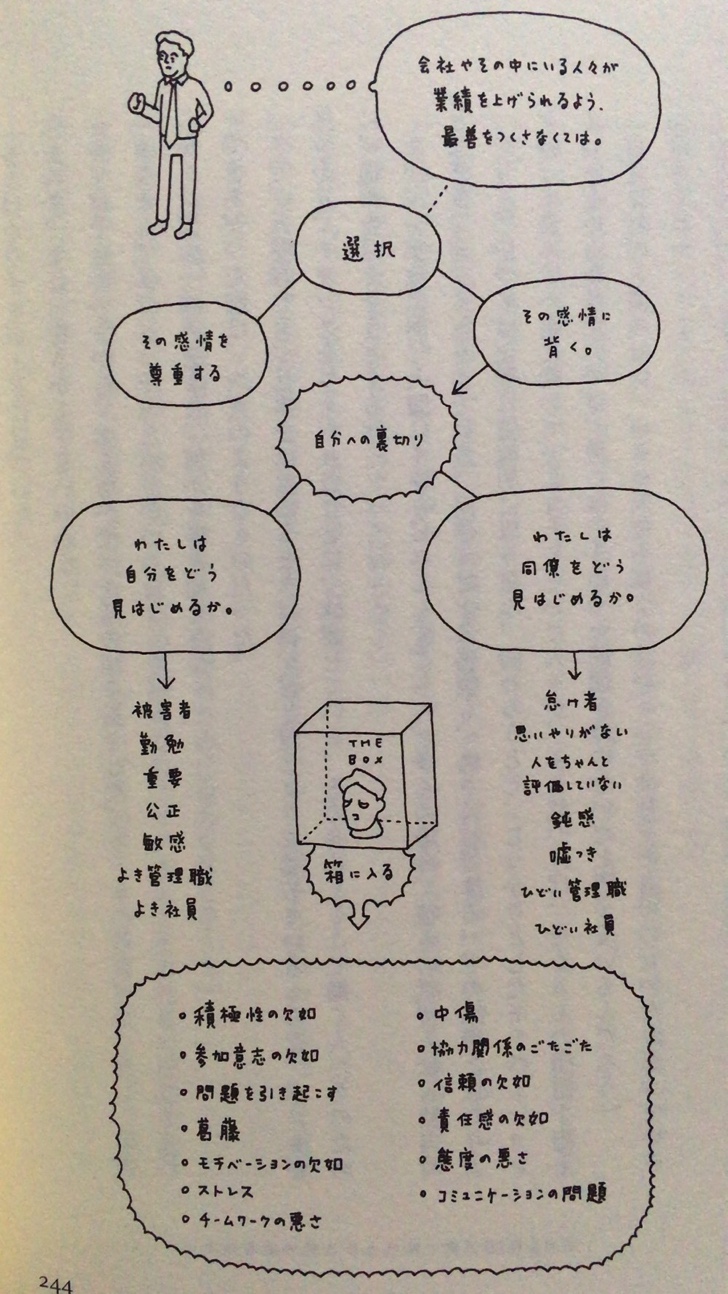 多くの組織では「自己欺瞞」という病気が蔓延っており、これを取り除けば素晴らしい組織になります。これを「箱」というキーワードでわかりやすく解説してくれています。あなたを箱の中に追い込むのは「自分への裏切り」に他なりません。
