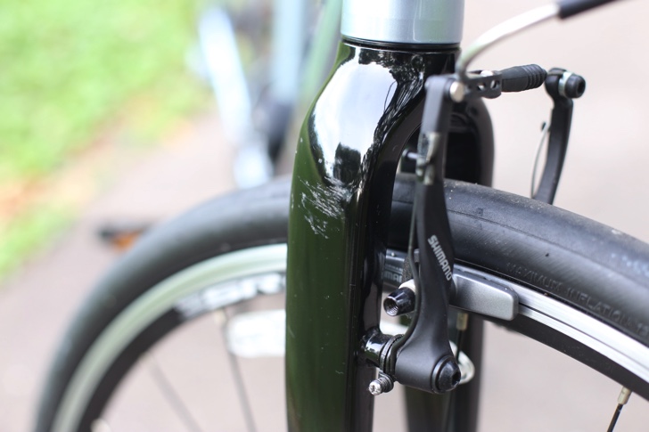 フロントスポークは地球ロックする際に擦れるためやや擦り傷ができました。