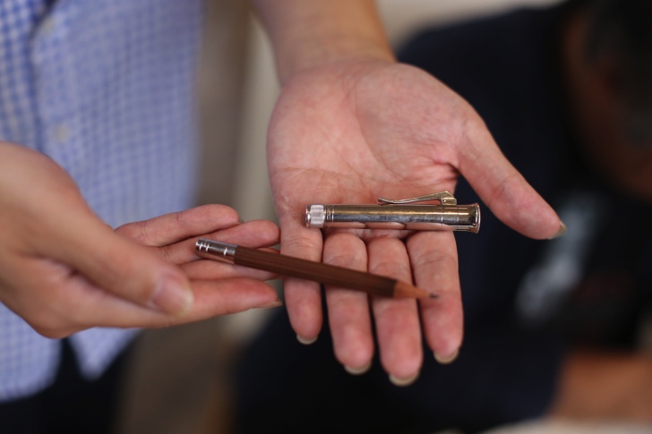 先日、愛知の文具王フミヒロ氏が主催されている文房具朝食会へ参加してきました。この日のテーマは「お気に入りの文房具」。参加者のひとりで文具王に引けを取らない文具好きの青年が紹介していたのが「ファーバーカステル ペンシル パーフェクトペンシル プラチナコーティング ブラウン」という定価3万円の鉛筆。キャップがプラチナなので高価らしいのですが書き心地も抜群のこと。一瞬カッコイイと思いましたが筆者の価値観の中で鉛筆に3万円出すという選択肢はありません。