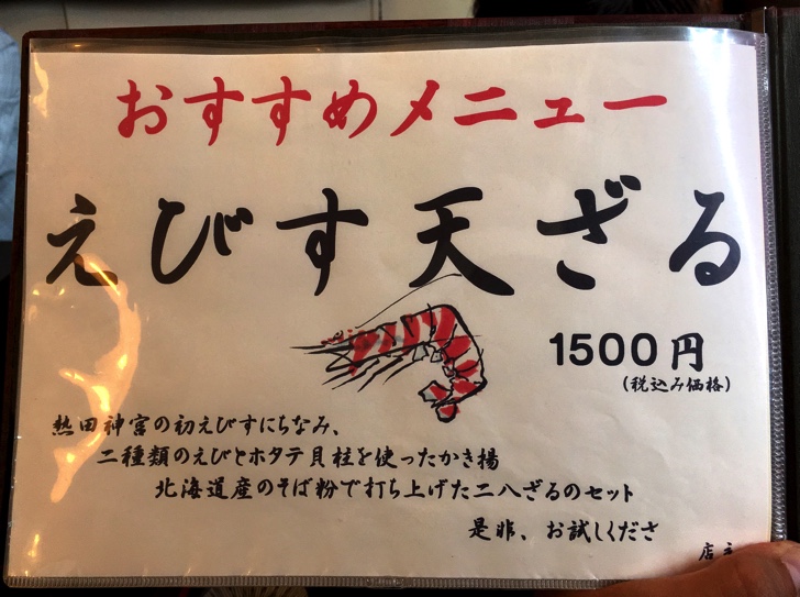 おすすめの桜えび湯葉そば、えびす天ざるがとっても気になります。