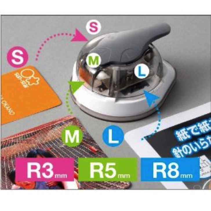 サンスター文具の「かどまるPRO」は、ラミネートや名刺の角をキレイに丸くカットする従来の製品にさらなる機能を搭載したプロ仕様。用途に合わせて3mm、5mm、8mmの丸角カットから選択することが可能。お手軽なお値段で、100ミクロンのファイルで加工されたラミネートもキレイに切れる抜群の切れ味。