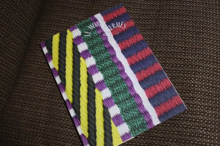 3階の会場へ行くと受付で「エルメスの手仕事」展のリーフレットとシール、エルメスのカタログが貰えます。