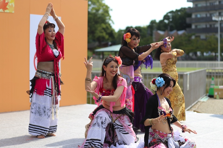 食後は竹製水鉄砲製作体験に参加しましたり、ステージのイベントを観たりして過ごしました。ステージイベントは近くで見ると夢に出てきそうな熟女のベリーダンスや売れない地元アイドルDELAの歌とトークショーなど、なかなかB級な感じである意味楽しめます。14時過ぎに暑さでバテてきたので、出店していた店で梨を買って帰宅することに。例年通り涼しければ、もう少し居ても良かったのですが、大人には暑すぎました。