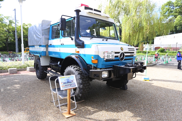 今年は熱田区になってから80周年の節目のため、イベントが大掛かりに開催されていました。お絵かきバスの横では警察や自衛隊が参加しており、パトカーや白バイ、災害救助車両ウニモグなどが展示してありました。その他、地元企業のブースがあり投げわやクイズなどに参加すると様々な景品が貰えました。長女は某ブースで1等のキネティックサンドのパチもんが当たり大喜び。その他は駄菓子とか雑貨とかあまり大したものはありませんでしたが嵩張るため、大きめのマイバッグは必須。忘れずに持っていきましょう。