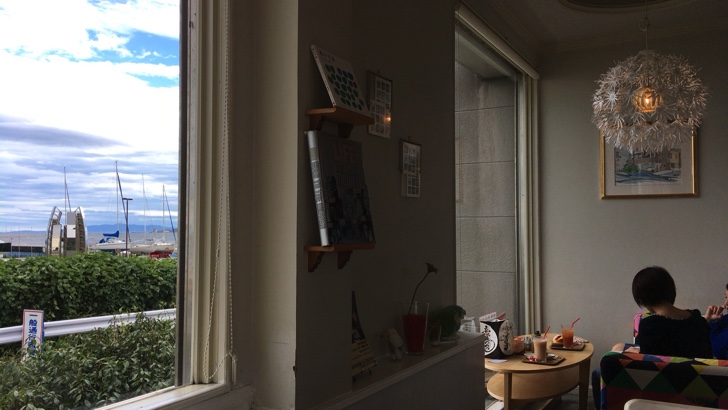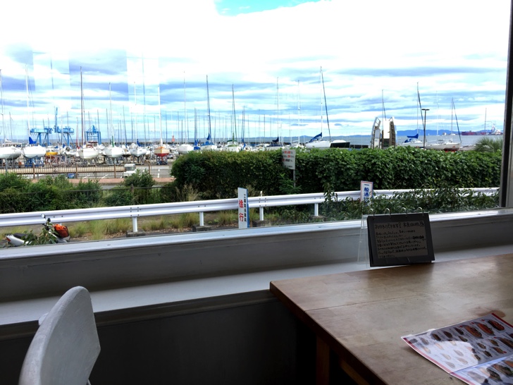 店内からヨットハーバーが見える抜群のロケーション。机や椅子などのインテリアも超オシャレで洗練されています。スタッフの方に聞いたら、オーナーがニューヨークまで行って様々な建築物を研究し、それを元にデザインしたとのこと。