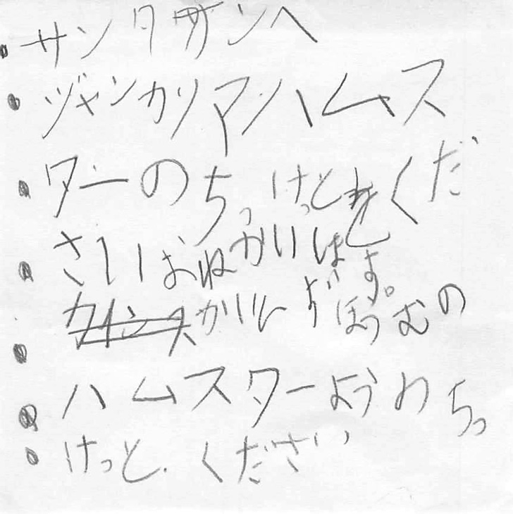 普通に正面から「ハムスターが欲しい」と言ってもまず親は動きませんが、サンタにお願いすると言えば考えざるを得ません。
