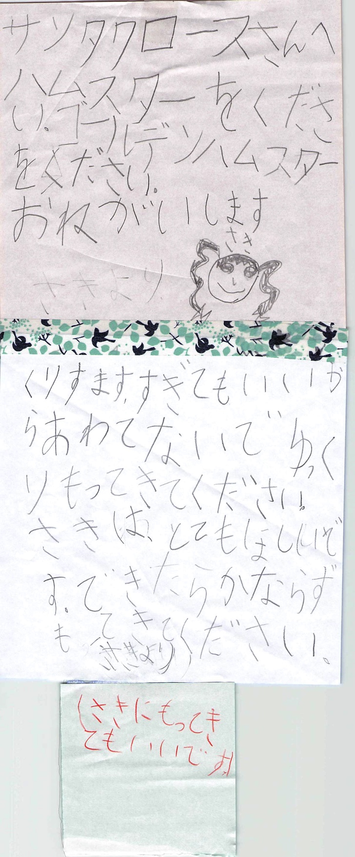 本を読んだらゴールデンハムスターより、ジャンガリアンハムスターの方が懐きやすくて抱っこできると知ったらしく、またお手紙が。