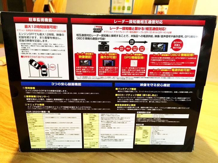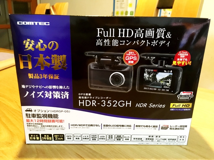 COMTECにはほぼ同じ性能で3,000円ほど安い機種「ZDR-014」もありますが、こちらは部品が韓国製になります。ドライブレコーダーは直射日光を浴びるため部品の耐久性は重要になってきます。日本製は韓国製より品質のいいパーツを使っているため、故障のリスクは減ります。なお、「HDR352GH」には3年保証がついていますが、「ZDR-014」には1年しか保証がありません。どうせ買うならカタログスペックでは見えない部分の品質が優れている「HDR352GH」を買った方がいいと思います。