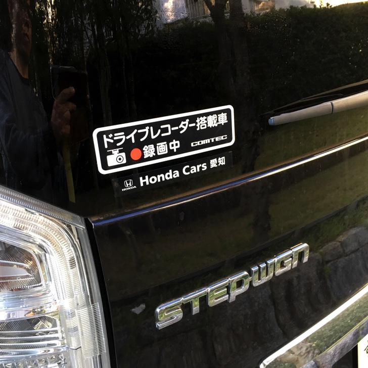 付属品として「ドライブレコーダー搭載車 録画中」というシールが入っていたので早速、車の後部に貼りました。これだけでも相当抑止力があるような気がします。ステッカーだけ販売されていますので、とりあえず貼っておくといいかもしれません。
