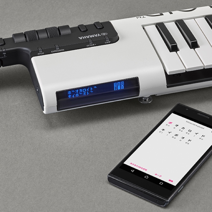 ボーカロイドとは「初音ミク」に代表される機械の合成音声ボーカル。ボーカル+アンドロイドでボーカロイド。ユーチューブなどにはたくさんの作品がアップされています。今回発売になるボーカロイドキーボードはショルダータイプでどこでも持ち運び可能。スマホのアプリで歌詞を登録することにより、自分で作詞した歌詞をその場で音階をつけて歌わせることができます。
