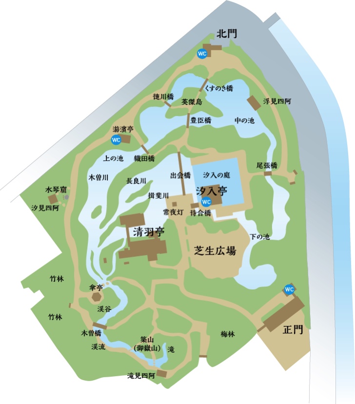 庭園は広すぎず、狭すぎず、ゆっくり廻って1時間ぐらい。バリアフリーではありませのでベビーカーでは動けませんが子連れでも十分楽しめます。