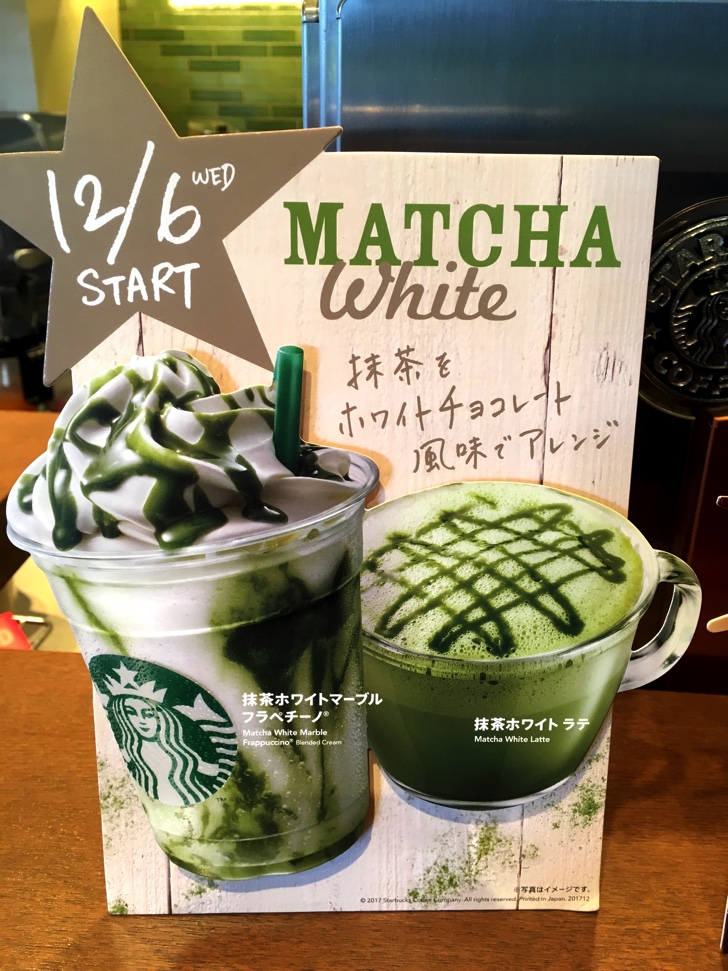 またこの日から期間限定で抹茶ホワイトラテと抹茶ホワイトマーブルフラペチーノの販売が始まります。フラペチーノは糖分が多すぎるので飲みませんが、抹茶ホワイトラテは飲んでみます。