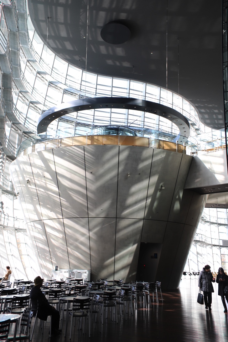 12/4(月)の午前10時前に国立新美術館に到着したら、すでに50名ほどの入場待ち。東京はどこへ行っても平日でさえ人がいっぱい。中央の案内所にキャリーバッグを預け中に入りました。