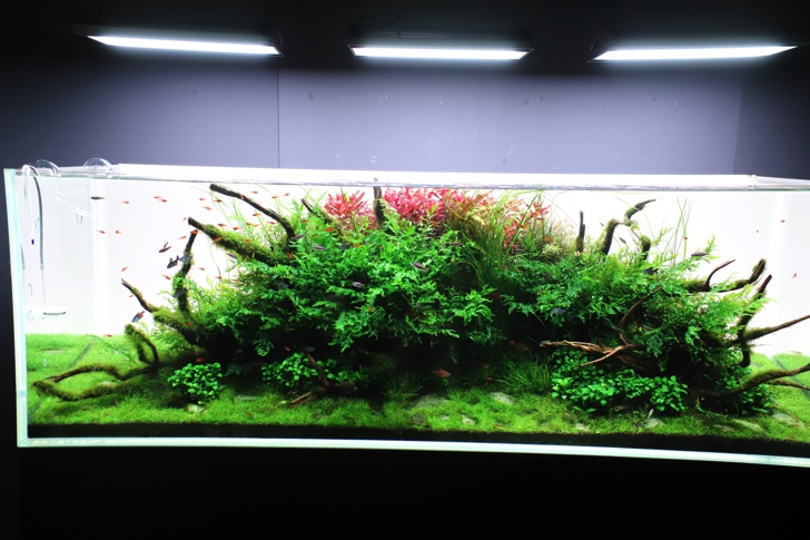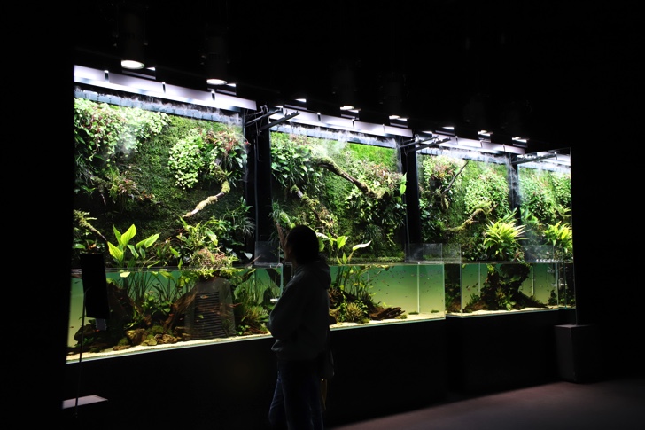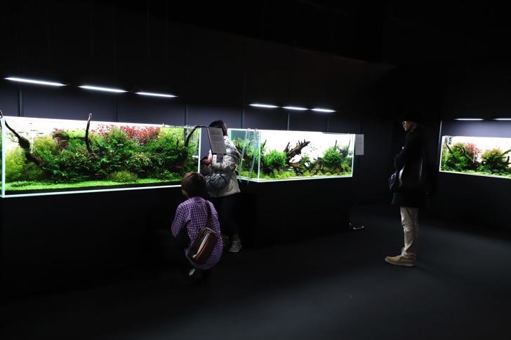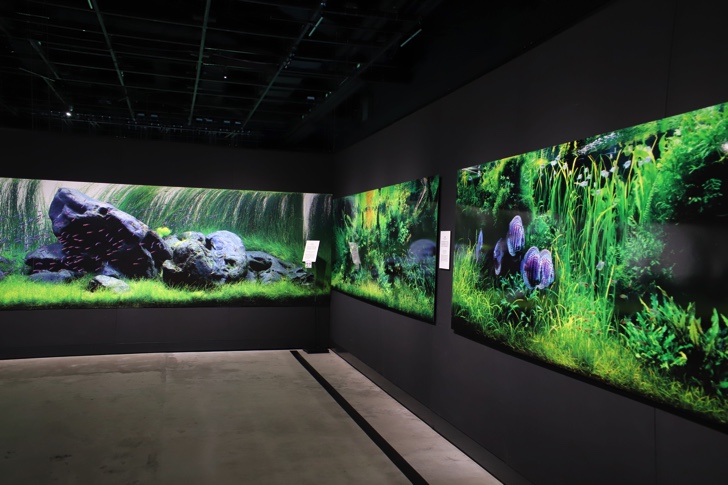 会場には、本展のために製作された特別水槽「巨大ネイチャー水草ウォール」を含むネイチャーアクアリウム作品11点を展示。