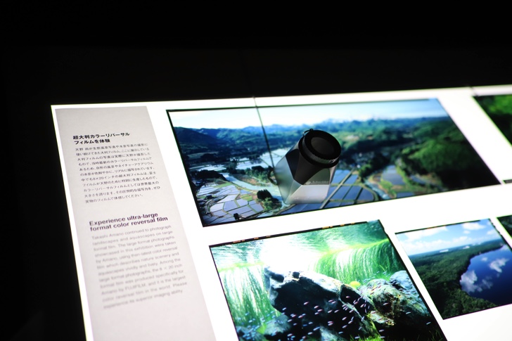 2008年7月開催のG8北海道洞爺湖サミットの会場に飾られた佐渡原始杉の超特大写真パネルなど、天野氏による超大判フィルムに撮影した最大8mの生態風景写真や水景写真をご覧いただけます。