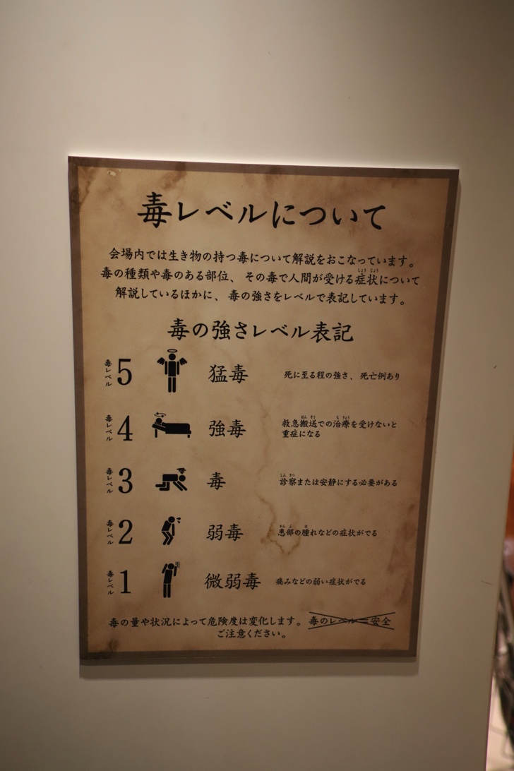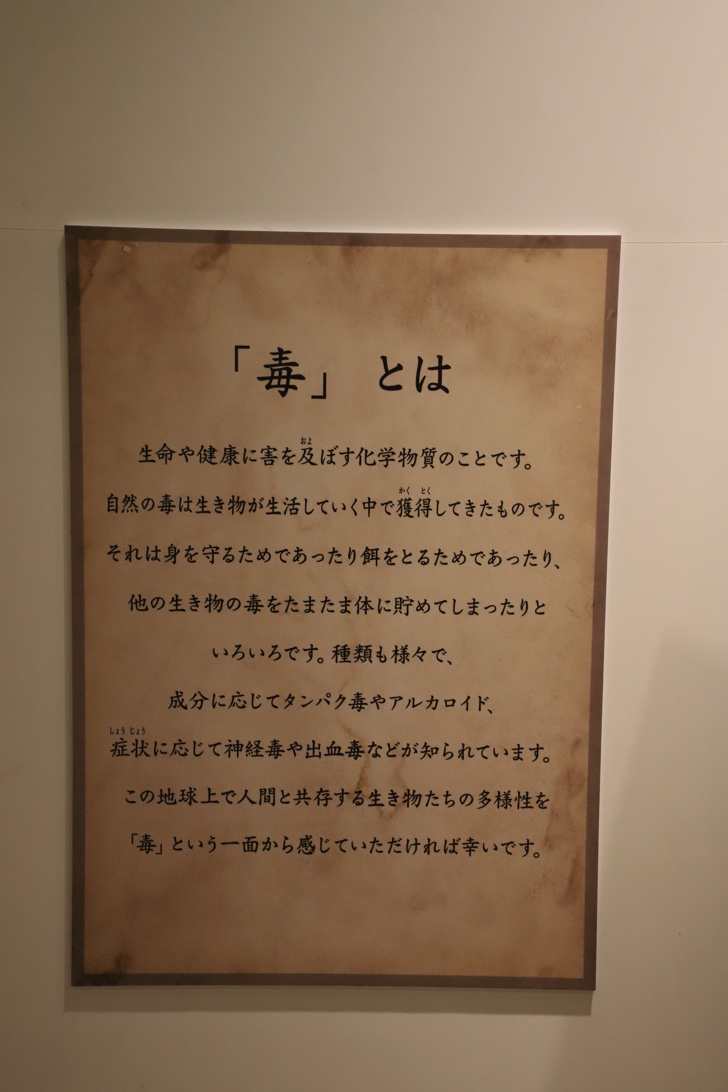 学術的には前回より毒性の高い生き物が多いようですが、実際に毒を試すことはありませんので、毒性の高さ云々よりも見た目のインパクトがあった昨年のキモい展の方が個人的には楽しめました。