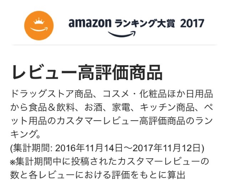 先日、Amazonランキング大賞2017が発表されました。売上ランキングも参考になりますが、レビュー高評価商品は一層参考になります。レビュー数が多くて、高得点な商品はコストパフォマンスは最高。