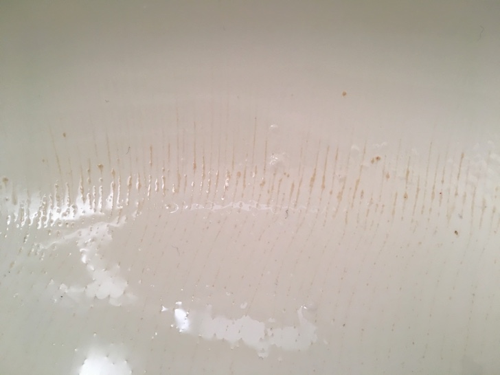 結婚してから風呂掃除は筆者の仕事になっています。毎朝、残り湯を洗濯機で使ってから栓を抜き、流して掃除します。水が抜けた後は垢でしょうか、何やらよくわからないものが浴槽にくっついています。