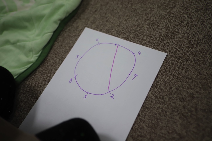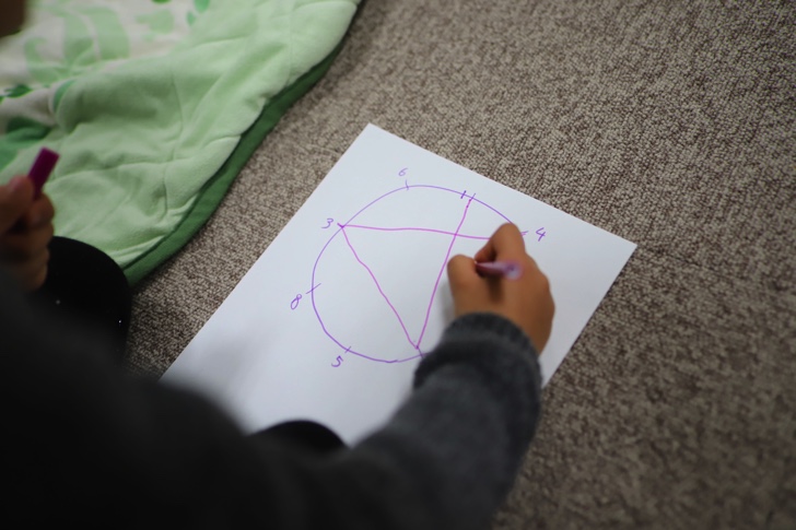 まずは色んな星を描くことから始まりました。たいてい星を描くとなると角が5つの☆ですが、今回は角が7つ、8つなどの星をどうやって描けばいいかを学びました。まずは丸を描き、そこに目印を描いていきます。そこに1から順番に番号を書いてきます。1の次は右に3つめ、3つめ…と書いていき、最後は1に戻ります。