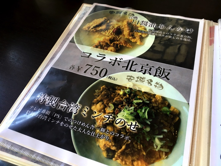その他に台湾まぜそば、酸辣タンメン、石焼麻婆豆腐などの単品もあります。個人的には白醤油あんかけの北京飯が好き。