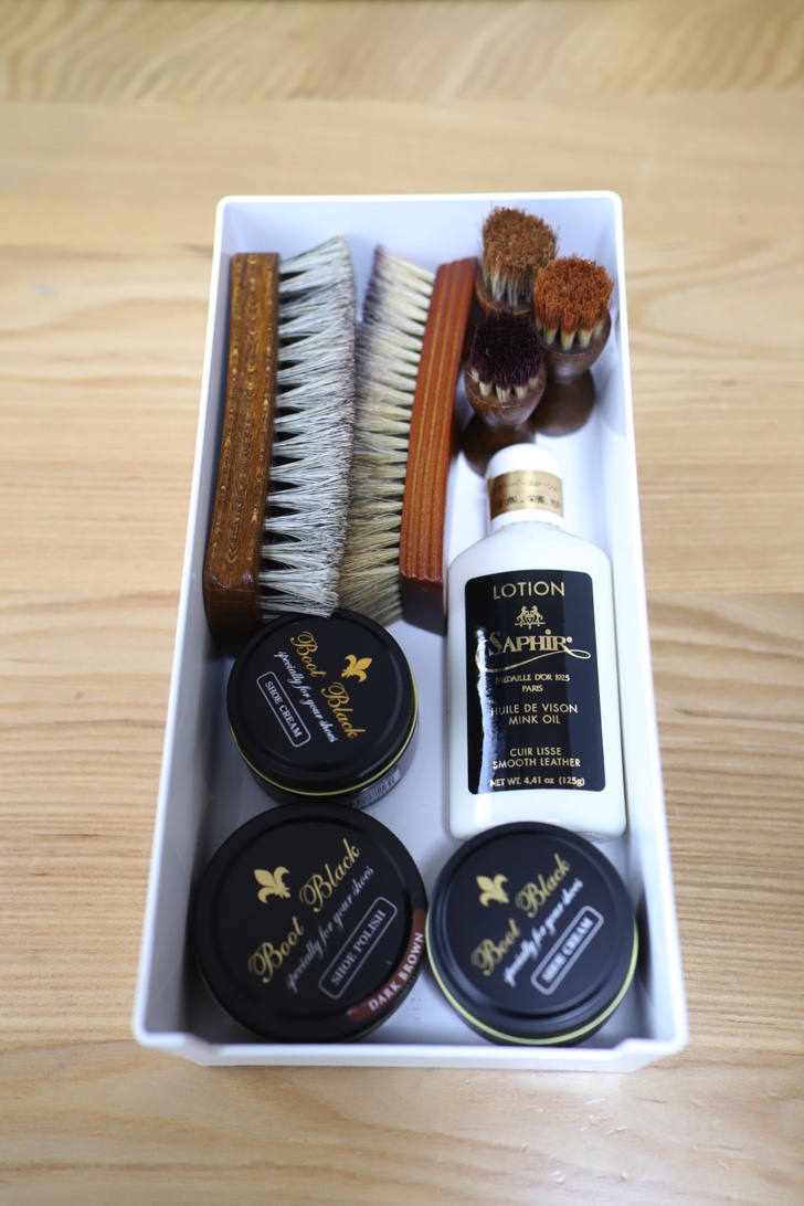 そして、これらの靴を常にきれいな状態にして長く履き続けるために本格的に靴磨きをすることにしました。万能靴クリームは使っていましたが、今回、ブラシから靴クリームまで全て一通り揃えました。