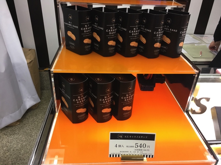 N.Y.キャラメルサンドはクーベルチュールチョコレートで生クリーム、黒糖でとろとろに炊き上げたキャラメルを包み込み、バターたっぷりの香ばしいクッキー生地でサンドした洋菓子。4個入540円(税込)、8個入1,080円と手軽な価格なので、ちょっとしたお土産としてもぴったり。
