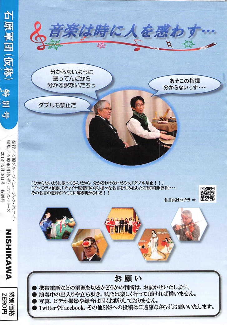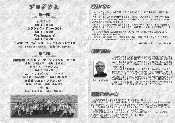 今回のコンサートは「石原軍団(仮称)ラストコンサート」。指揮者が石原氏だからこのネーミングになったらしいのですが、パンフレットも西部警察をパロった作りになっています。