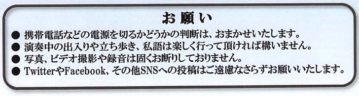●演奏中の出入りや立ち歩き、私語は楽しく行って頂ければ構いません。