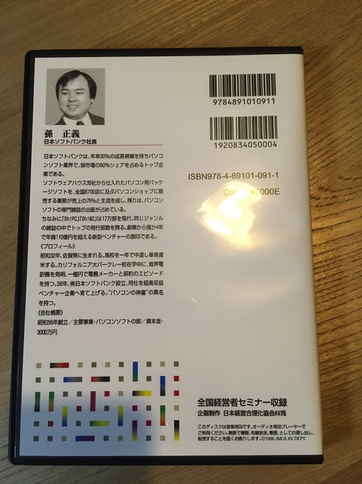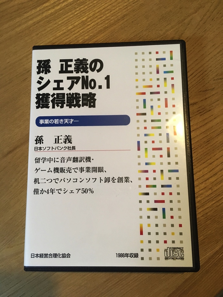 先日、友人から孫正義氏の昔の講演のCDを借りました。勉強家の友人が絶賛していたので、ぜひ貸して欲しいとお願いして借りることになりました。収録されたのは1986年、今から32年前。まだ、日本ソフトバンクという社名でソフトウェアと出版事業が軌道に乗ってきた頃の講演なのですが、今聴いても参考になったり、感心することが山ほどありました。