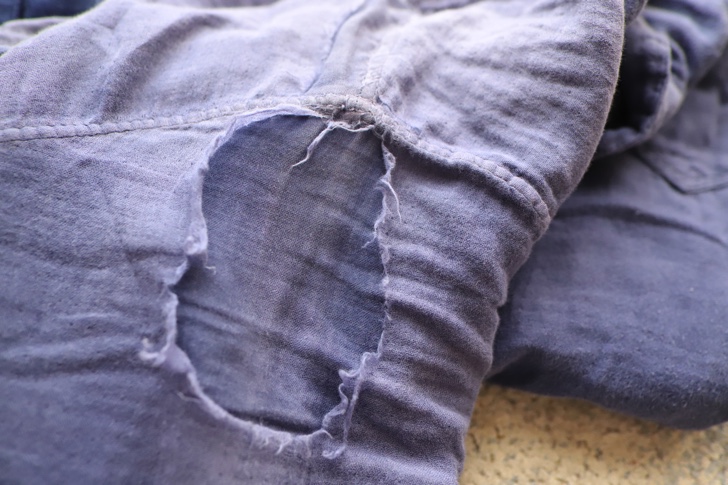 着用率としては7:3ぐらい。今回はお尻ではなく肩に穴が空きました。