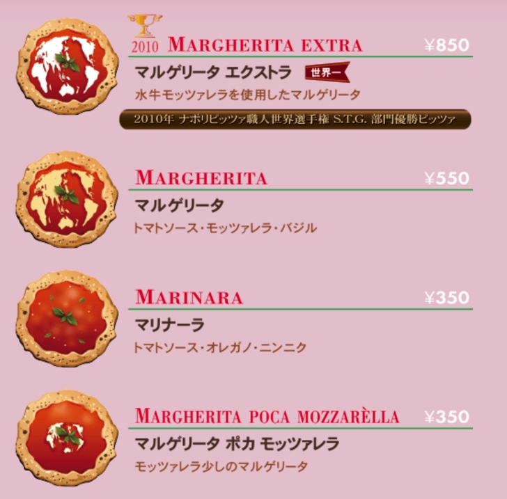 チーズが食べられなかったり、嫌いな方はトマトソース・オレガノ・ニンニクのみのマリナーラが350円という破格値なので、こちらをオススメいたします。この価格でこのクオリティのピッツアはここでしか食べられません。コスパでは間違いなく、日本一。