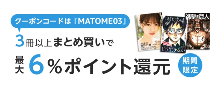 書籍3冊以上をカートに入れ、注文確定前にクーポンコード「MATOME03」入力で最大6%ポイント還元されます。