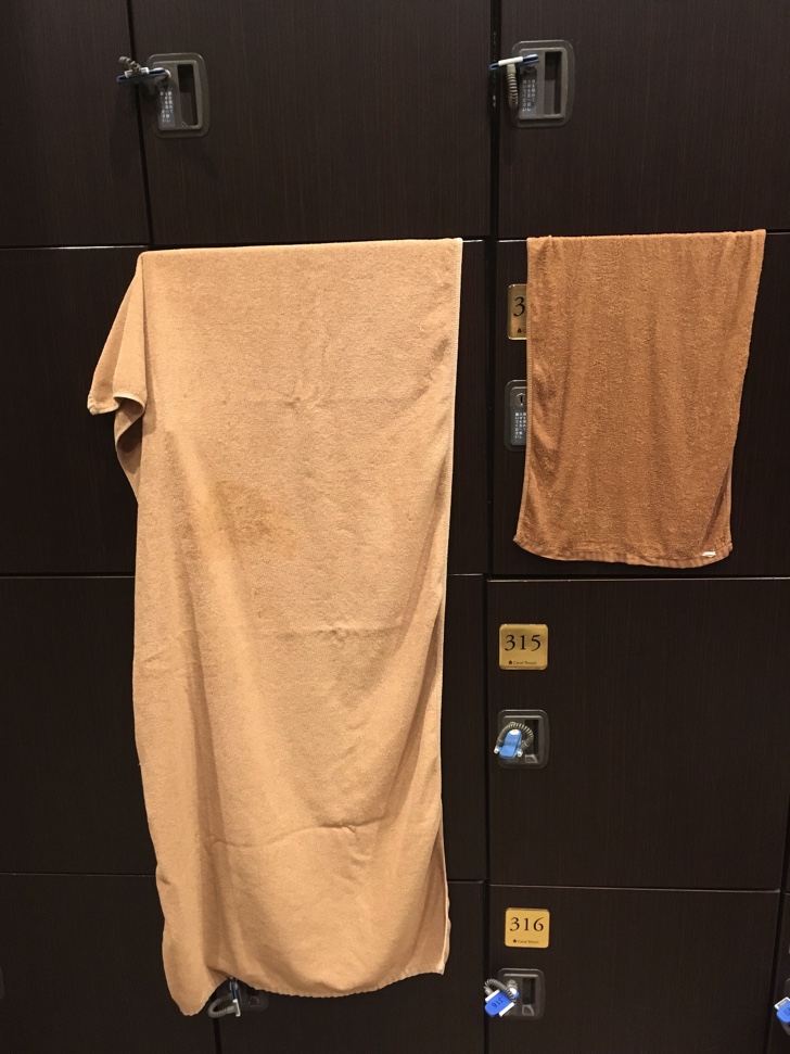 バスタオルは大判で身体を拭くには十分な大きさ。肌触りはまずまずで特に問題はありません。通常1セット200円なので、家族4人だと800円かかりますが、ぴよかカードがあれば妻の分と合わせて4人分無料になります。