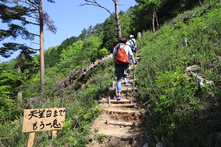 急な勾配には階段が作られていますので、スニーカーなどであれば十分登ることができます。