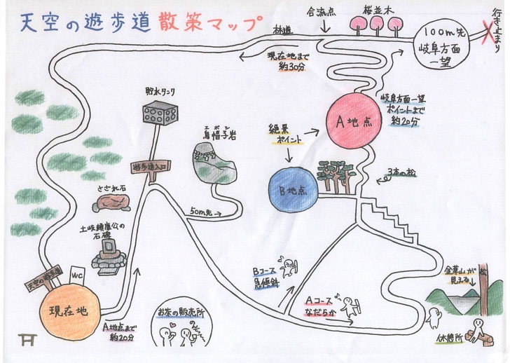 分岐ポイントには天空の遊歩道の看板がでていますので、迷うことはありません。