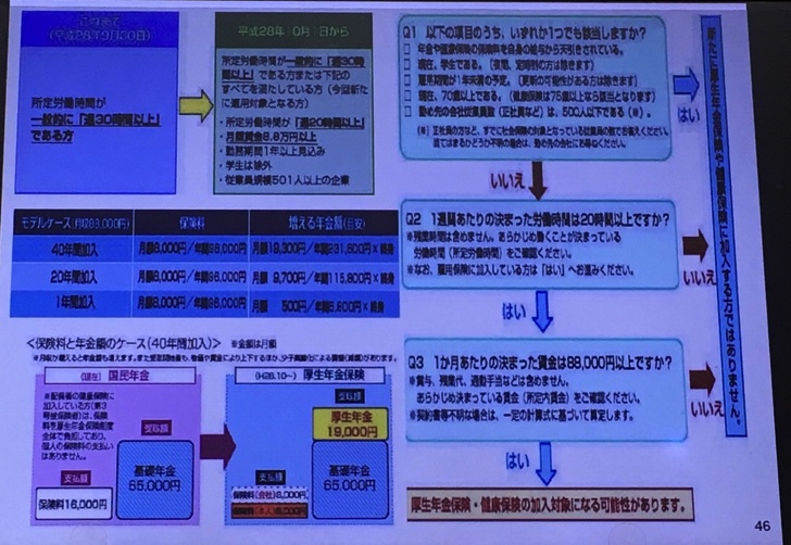 意外と知られていないが、パートタイムでも条件をクリアすれば厚生年金に入れるようになる。これも申請が必要なので、知らないと損をする。