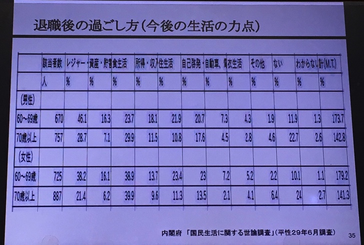 愛知県は健康寿命が日本で一番。定年直後は旅行へ行ったりするが、70歳以上になるとやることがなくなる。健康寿命を延ばすには規則正しい生活をすることが大切。