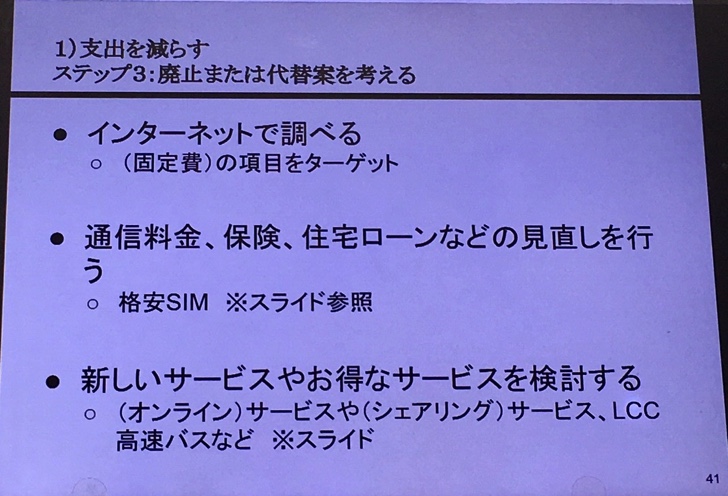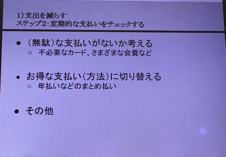 マネーフォワードなどの家計簿アプリはおすすめ。300円前後の無駄な会費がないか確認する。300円前後だと手続きが面倒なのでついついそのまま払ってしまう。クレジットカードを使えば1%〜2%の利回りと同じことになる。マイレージに変換すればもっと利回りは良くなる。現金で支払いをするのはもったいない。