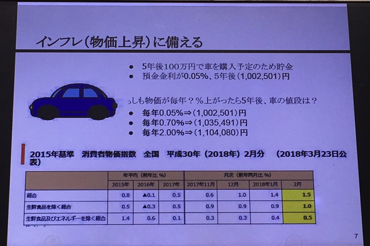 今後急速にインフレが進む可能性がある。2017年後半から急激に物価が上がっている。直近は1.5%程度上がっており、お金の価値がどんどん下がっている。物価上昇率よりは利回りの高い運用をしないと貯蓄の現金資産の価値はどんどん減っていく。