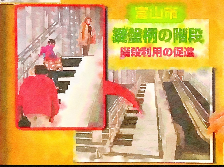 ・階段をピアノの鍵盤の柄にしたところ利用者が増え、健康増進に繋がった