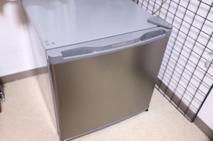 色々、調べた結果、一番良さそうだったのがエスキュービズムの32Lコンパクト1ドア冷凍庫「WFR-1032SL」。写真見る限り、デザインがシンプルかつ洗練されていて一番見た目がスッキリしていました。実物を見たいと思いヨドバシカメラへ出かけましたが、実機は置いておらず、仕方なくAmazonで購入しました。