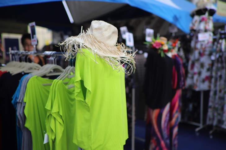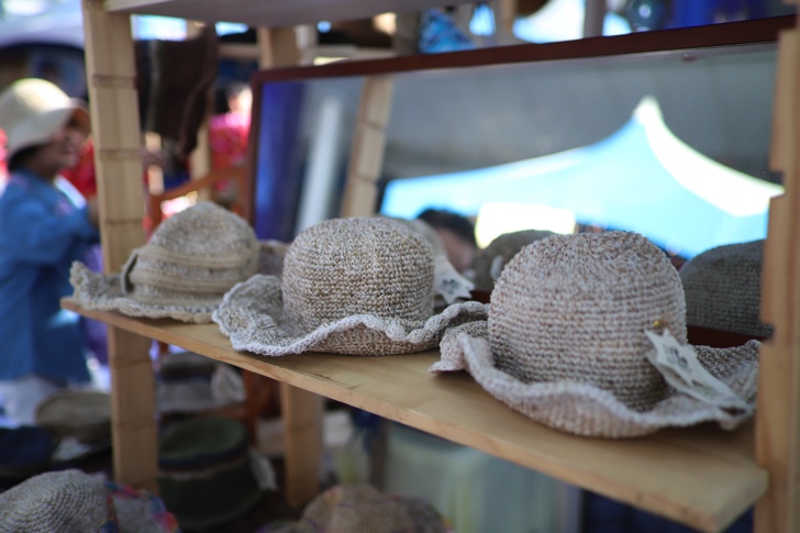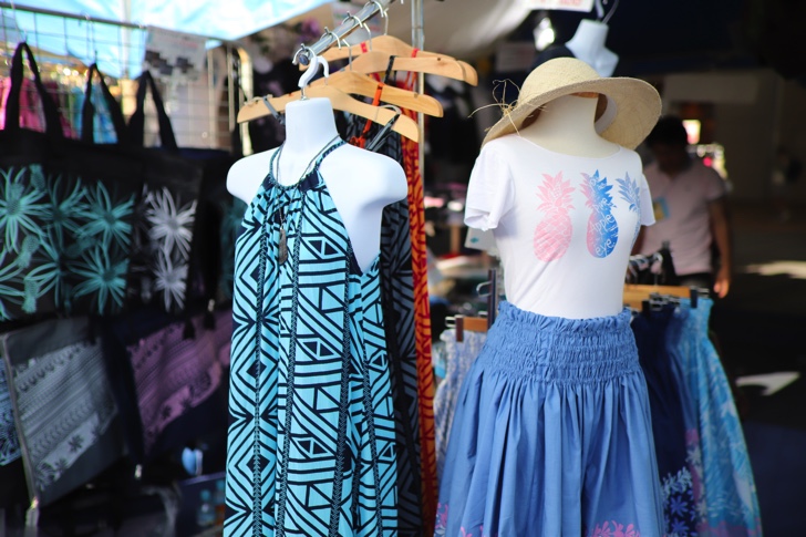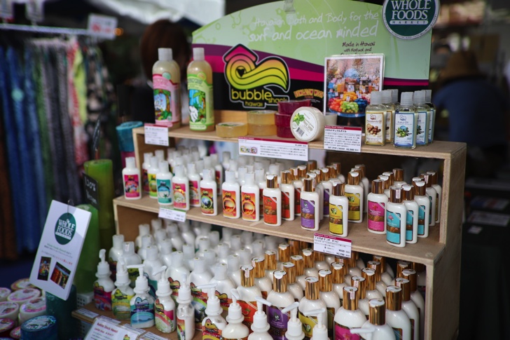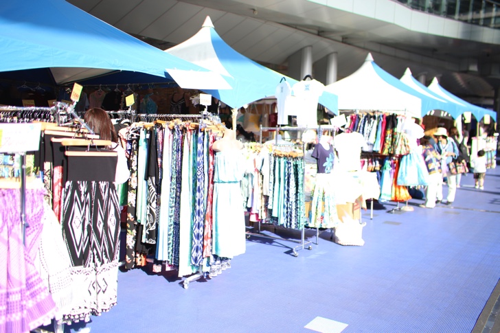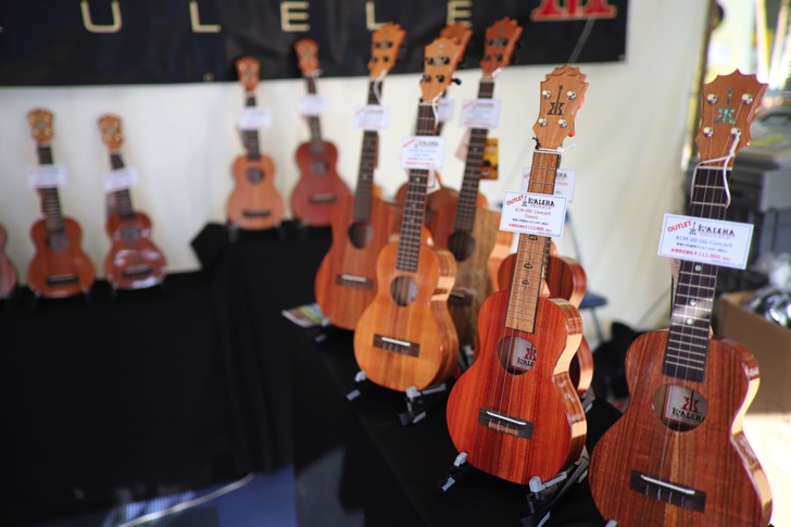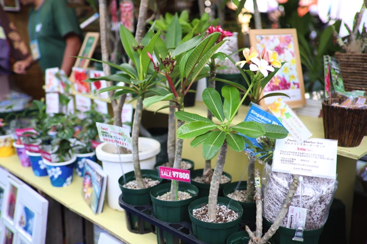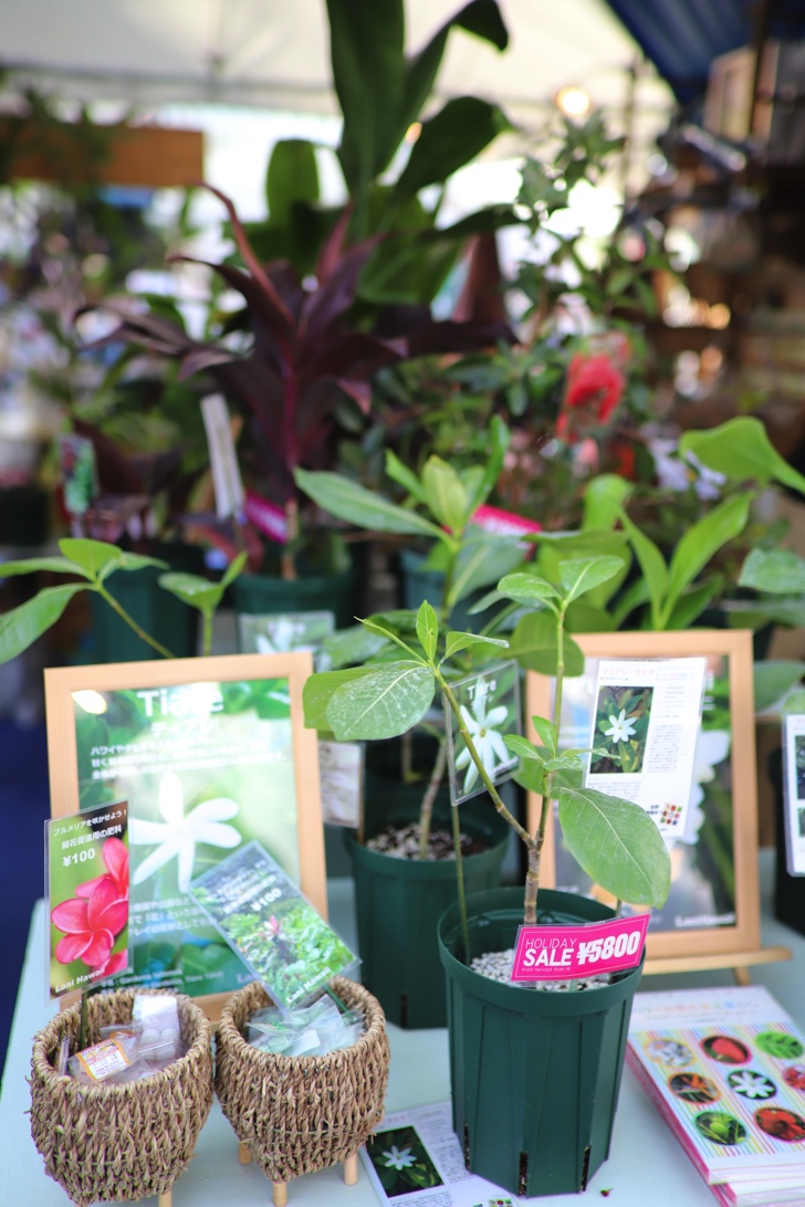物販ブースではハワイの衣装や雑貨、植物、ウクレレなどが並んでいます。