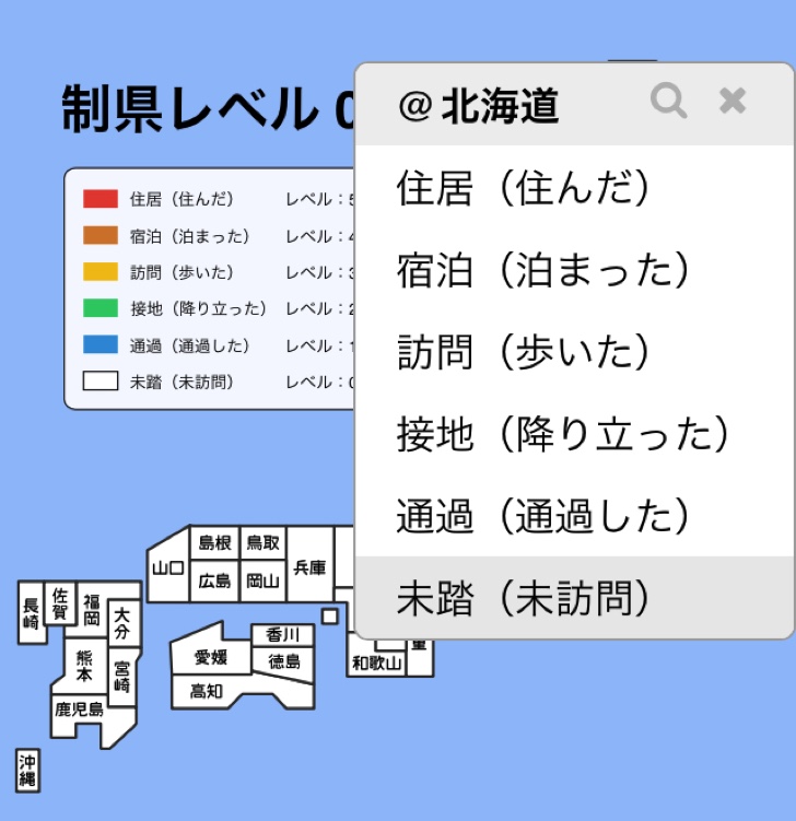 自分の記憶があれば、住んだり、訪れたことのある県を一覧で俯瞰できるのでとても便利。これを元に旅行の計画を立てるのもいいのではないでしょうか。