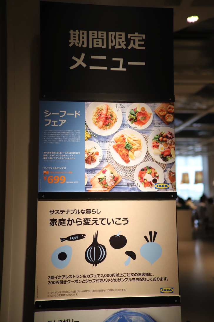 前回、キャンペーンでもらったポイントが3,000円ほどあり、ある程度欲しいものが決まっていたのでさらっと早足で買い物を済ませました。他に用事があったため、レストランは利用せず。当日はシーフードフェアが開催されていました。