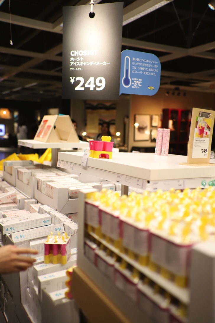 ディスプレイしてある商品は基本的には1階の奥に置いてありますので、2階で無理して買う必要はありません。商品ストックは天井に近い高さまで積み上げられており壮観。クレーンで積むんでしょうが、規模がアホほどデカくて、さすが世界のIKEAということを実感します。