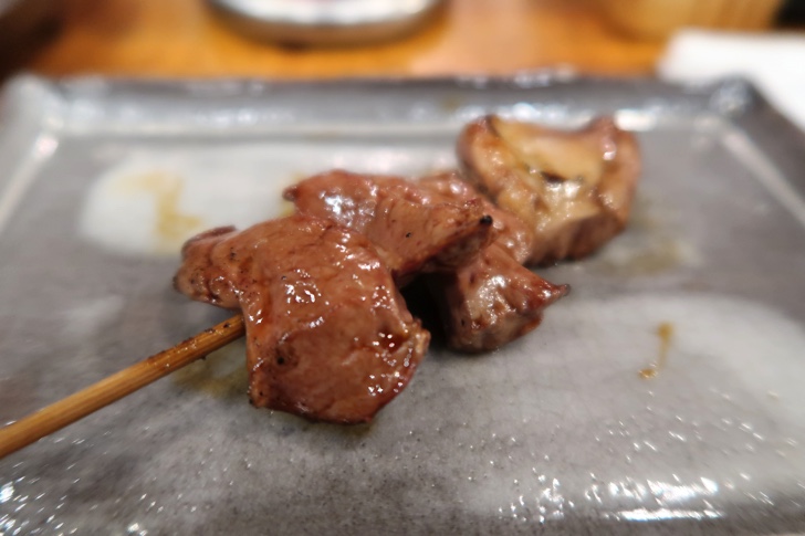 最初にもつ煮が出てきましたが、この時点では唸るほどではなく、載せるほどではなかったか…と思ったのですが、そのあと出てきた串焼きが美味しく、グングンと評価が上がっていきました。