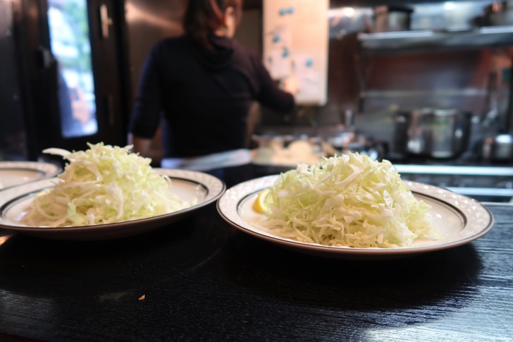 店員の方もみなとても愛想が良く、気持ちよく食事ができます。フラヤー担当のお姉さんは揚げたての熱々フライを素手で掴んで次々とキャベツが盛られたお皿に載せていきます。
