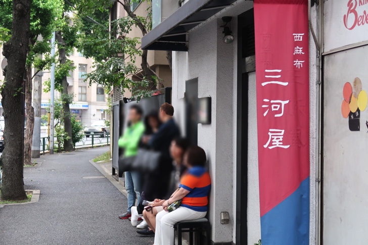 今回の東京美術館巡りのスケジュールはこの三河屋へ行くために国立新美術館訪問を月曜日にしました。上野の森美術館で開催しているミラクルエッシャー展を鑑賞してから六本木へ移動し、12時30分頃に到着。すでに7名の方が待っていました。事前に注文を取って回転率を上げてくれているので外での待ち時間は10分ほど。